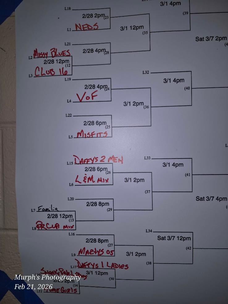 First Game starts at 7:30pm...Teams have a15 min grace period -